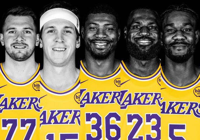 湖人队:斯玛特、詹姆斯、艾顿、里夫斯、东契奇!