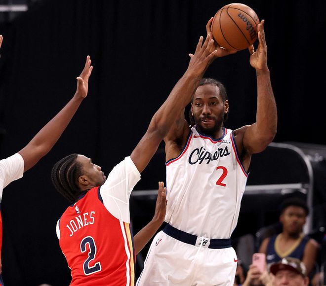 快船主场迎战鹈鹕,快船方面加兰、比尔缺阵,鹈鹕方面锡安缺阵,首节比赛快船优势明显,一度领先16分,首节战罢领先11分,第二节鹈鹕追回5分,半场战罢快船领先6分,第三节快船扩大优势,三节战罢领先13分,第四节快船继续扩大优势,最终快船137-117大胜鹈鹕。伦纳德18中8得到23分3板5助,大洛9中6(三分6中4)得到16分7板3助,米勒6中5得到19分2板8助3断,鹈鹕方面费尔斯15中10(三分6中5)得到28分3板4助2帽、奎因13中6得到19分5板2助2断、穆雷10中6得到17分5板5助。