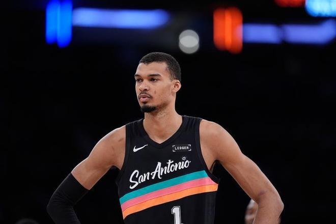 然后,到了二年级的文班亚马,也是彻底解除了自己的束缚。在帮助法国队拿到了巴黎奥运会的银牌后,回到了NBA的他,出场时间直接提升到了33.2分钟,而结果就是,这个赛季的他将数据猛增至24.3分、11个篮板、3.7次助攻、1.1次抢断和3.8次盖帽,防守端的他还是那么无懈可击,犹如一堵高墙,根本没有球员敢在内线挑战他。