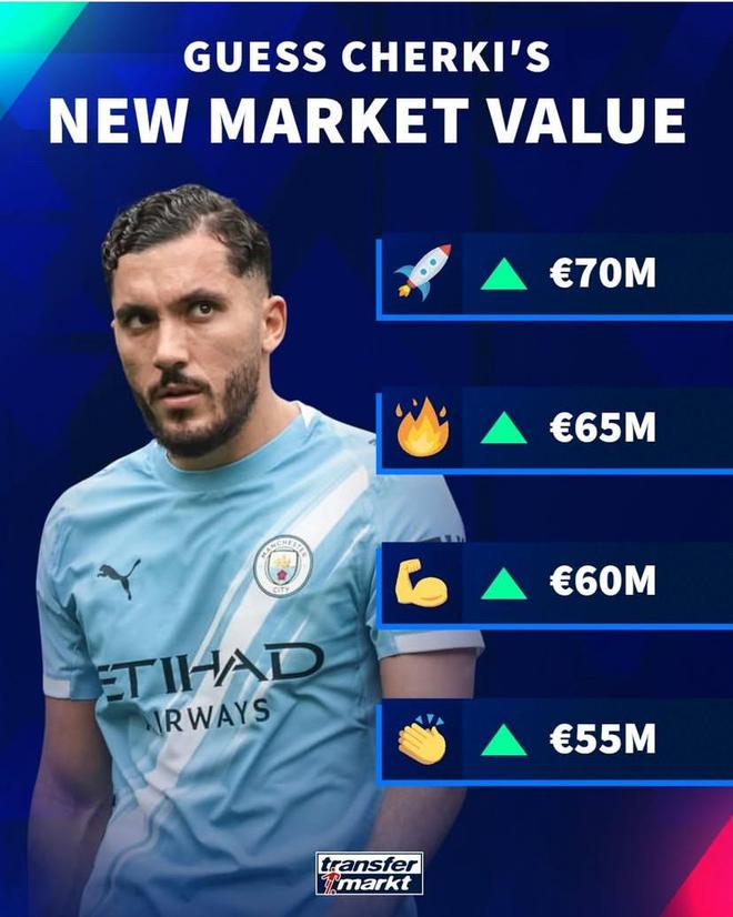 谢尔基去年夏天以3650万欧元的价格从里昂转会至曼城,赛季至今他代表蓝月亮出场36次,贡献9球10助攻,目前他在德转的身价为5000万欧元。